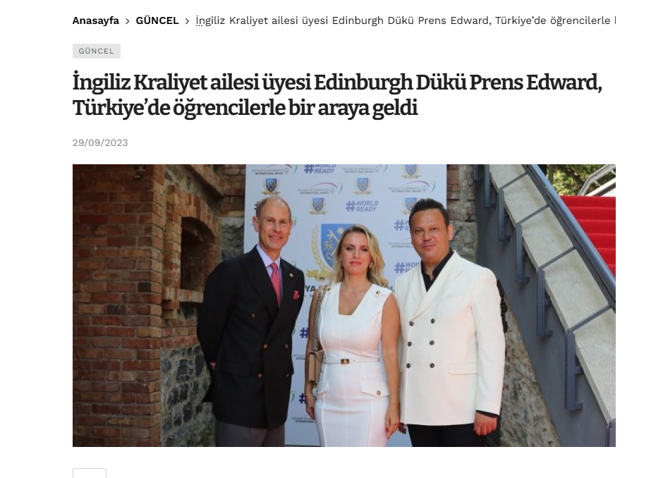 İngiliz Kraliyet ailesi üyesi Edinburgh Dükü Prens Edward, TBS Kurucusu ve Horizon Group Başkanı, eğitim gönüllüsü Mehmet Gültekin'in daveti ve evsahipliğinde Türkiye’ye geçekleşen ziyareti sırasında öğrencilerle bir araya geldi.